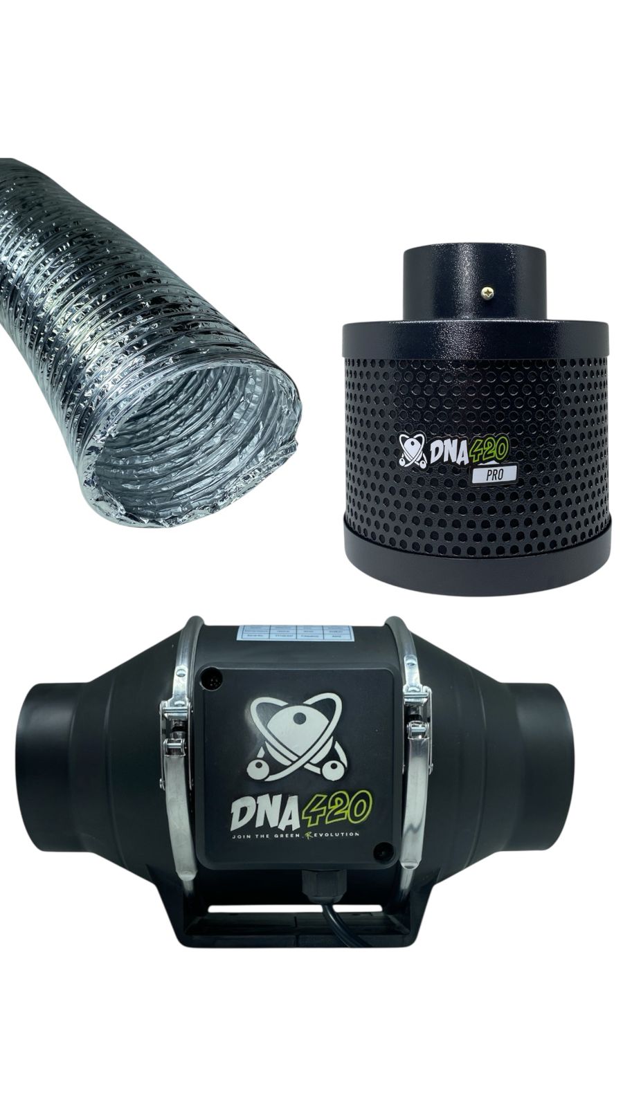 O Kit de Exaustão DNA420 é uma solução profissional para controle de odores e renovação de ar em ambientes de cultivo indoor. Composto por exaustor turbo de alto desempenho, filtro de carvão ativado de alta eficiência e duto flexível antichama, oferece ventilação silenciosa, eficiente e segura para seu cultivo.