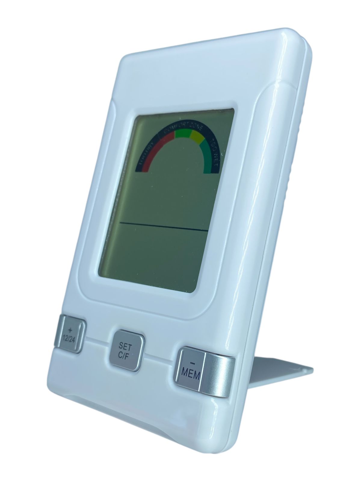 Termômetro e Higrômetro Digital Sinowell Controle de Temperatura e Umidade com Zona de Conforto Mantenha o ambiente sempre no clima ideal com o Termômetro e Higrômetro Digital Sinowell. Perfeito para cultivo indoor, estufas, orquídeas, salas climatizadas, adegas, escritórios e residências, ele mede com precisão a temperatura (°C/°F) e a umidade relativa do ar, garantindo que suas plantas, produtos ou espaços estejam sempre protegidos contra variações prejudiciais. Display digital de fácil leitura com indicador colorido de zona de conforto (seco, ideal e úmido) Função memória para registrar máximos e mínimos de temperatura e umidade Botões de configuração rápida: ajuste de hora, °C/°F e formato 12/24h Design moderno e compacto, com suporte retrátil para uso em mesa ou bancada Uso versátil: ideal para jardins, cultivo indoor, armazenamento de vinhos, estufas, escritórios e ambientes climatizados Especificações Técnicas: Faixa de Temperatura: -10°C a 50°C (14°F a 122°F) Faixa de Umidade: 20% a 99% UR Alimentação: 2 pilha AAA (não inclusa) Marca: Sinowell