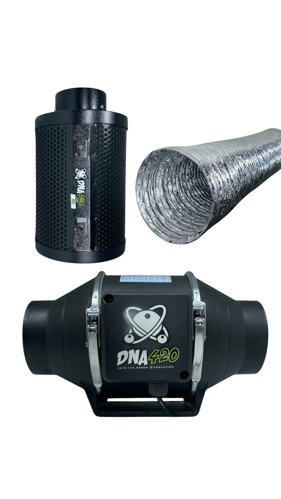 O Kit de Exaustão DNA420 é uma solução profissional para controle de odores e renovação de ar em ambientes de cultivo indoor. Composto por exaustor turbo de alto desempenho, filtro de carvão ativado de alta eficiência e duto flexível antichama, oferece ventilação silenciosa, eficiente e segura para seu cultivo.